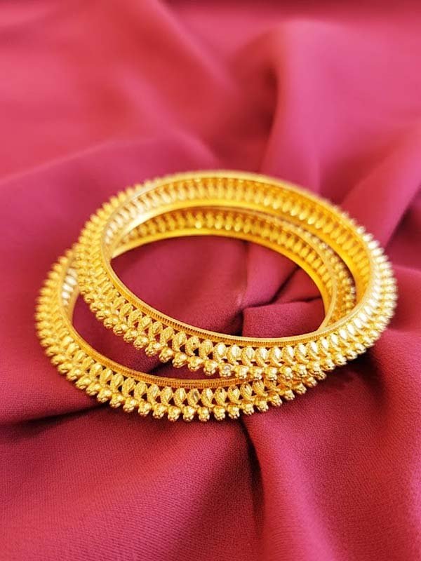 22K Gold Classic Nakshi Work Broad Bangles (Set of 2)