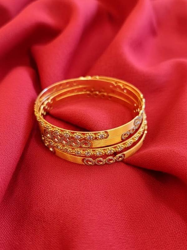 Dazzling Diamond-Dotted Gold Chudi Bangles