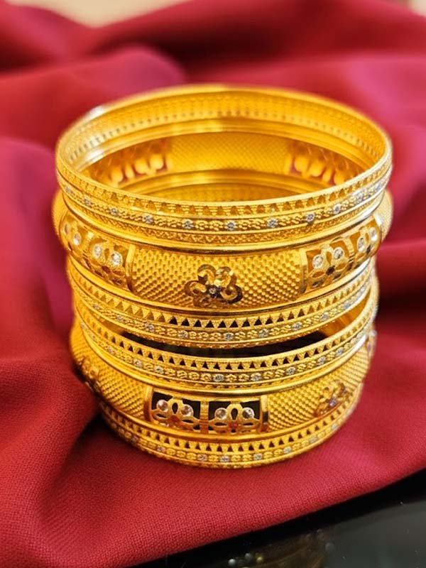 Exquisite Gold Chudi Bangles with Floral Motifs
