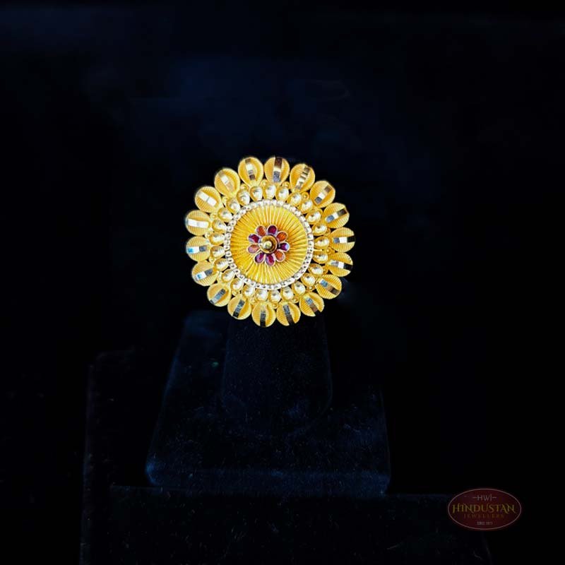 Floral Sunburst Gold Ring