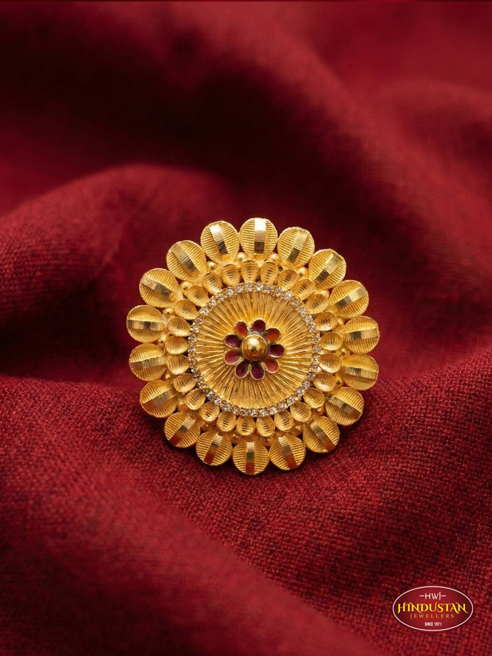 Imperial Sunburst Cocktail Ring with Meenakari Heart