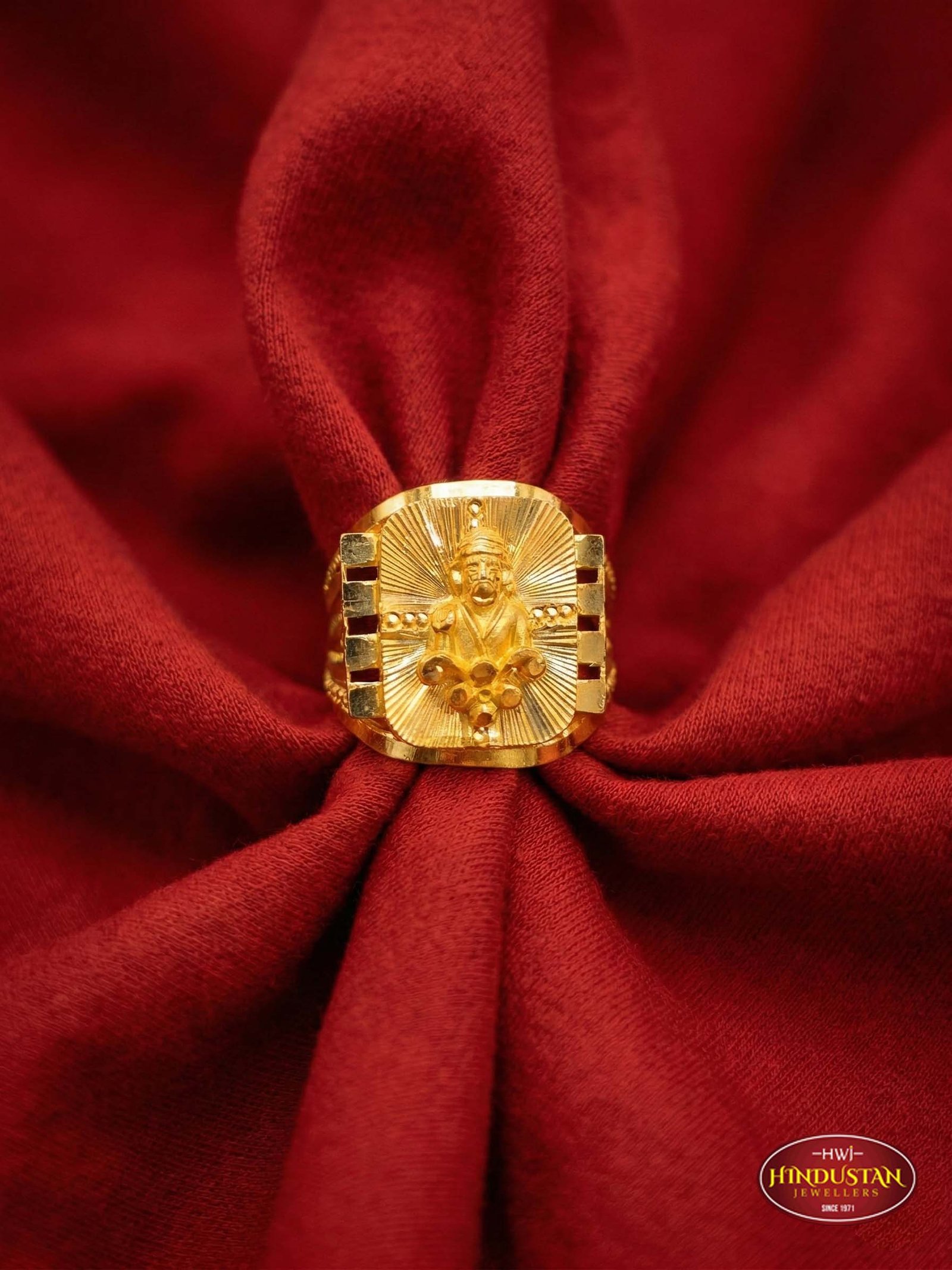 Divine Sai Baba Devotional Ring with Sunburst Texture
